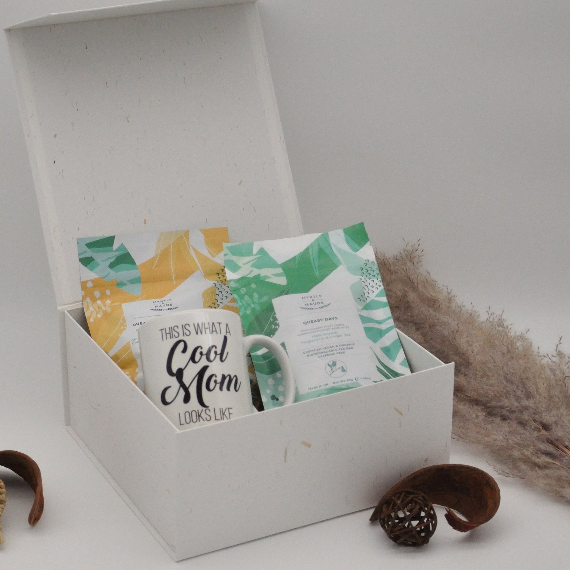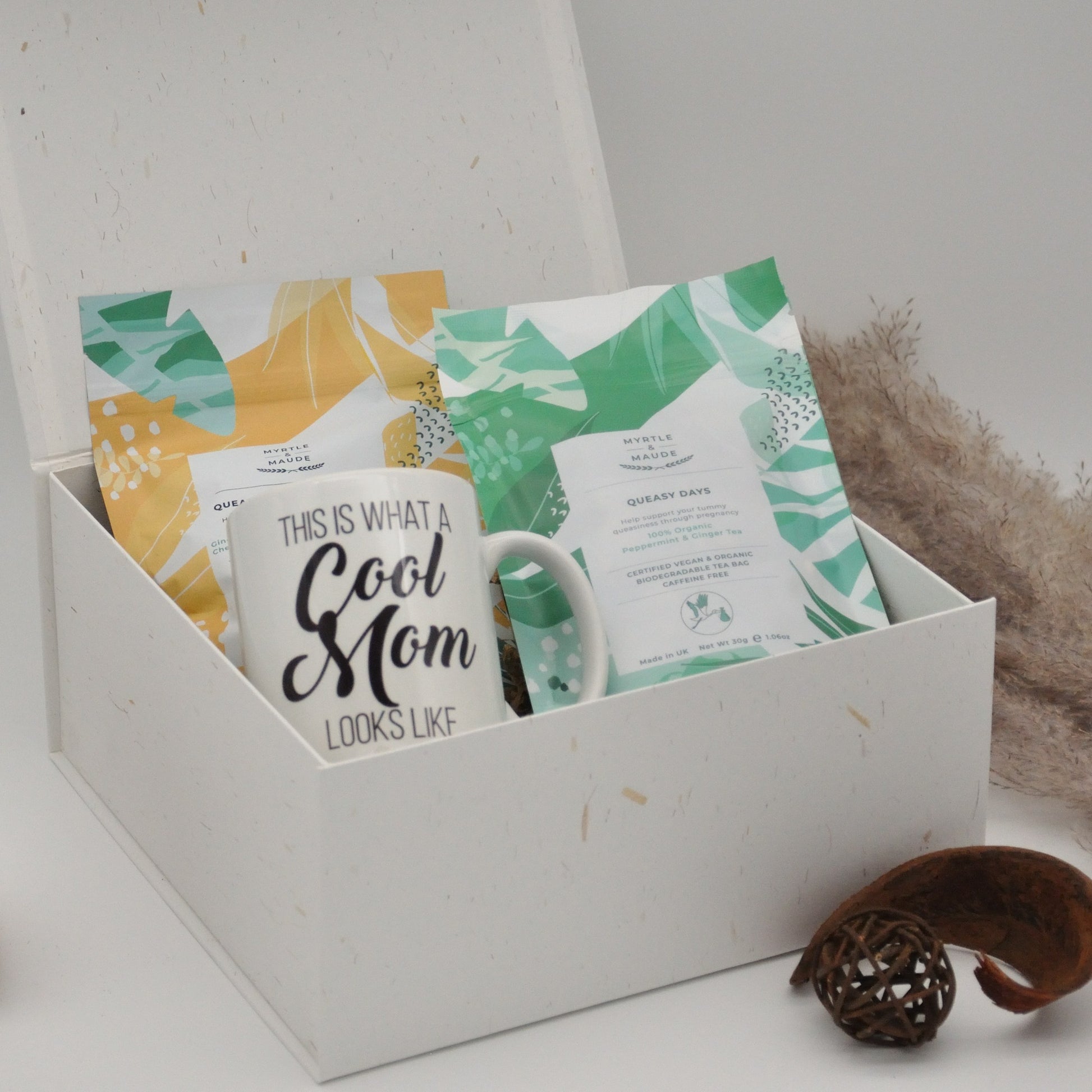 Surprise a mom-to-be with our carefully curated gift box, perfect for relieving morning sickness and bringing a smile. This beautiful set contains three high-quality products, packaged in an elegant Wowwy gift box