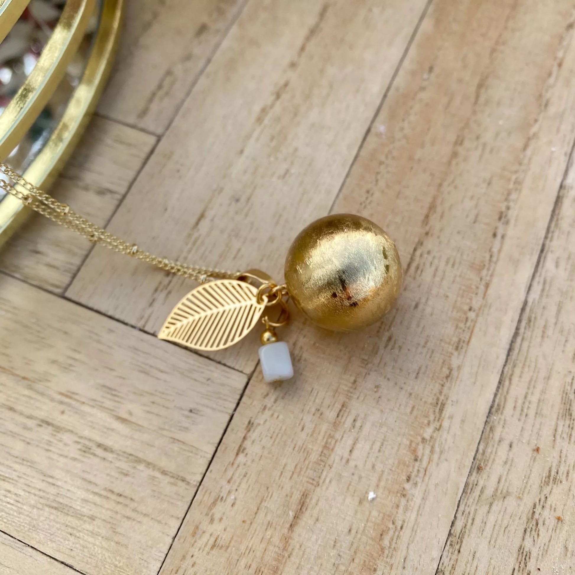- Maternity bola : This gold or silver pregnancy bola is an indispensable piece of jewelery for expectant mothers who want to build a bond with their baby. From the 20th week, a baby hears the sound of the bola, which is worn on the stomach with a long necklace. The baby becomes so familiar with the soft sound of the bola that it reassures him throughout the entire pregnancy. At birth he will remember this comforting music and this forms an extra bond with his mother. The length of the necklace can be adjusted as their belly grows. Chain length = 110cm.