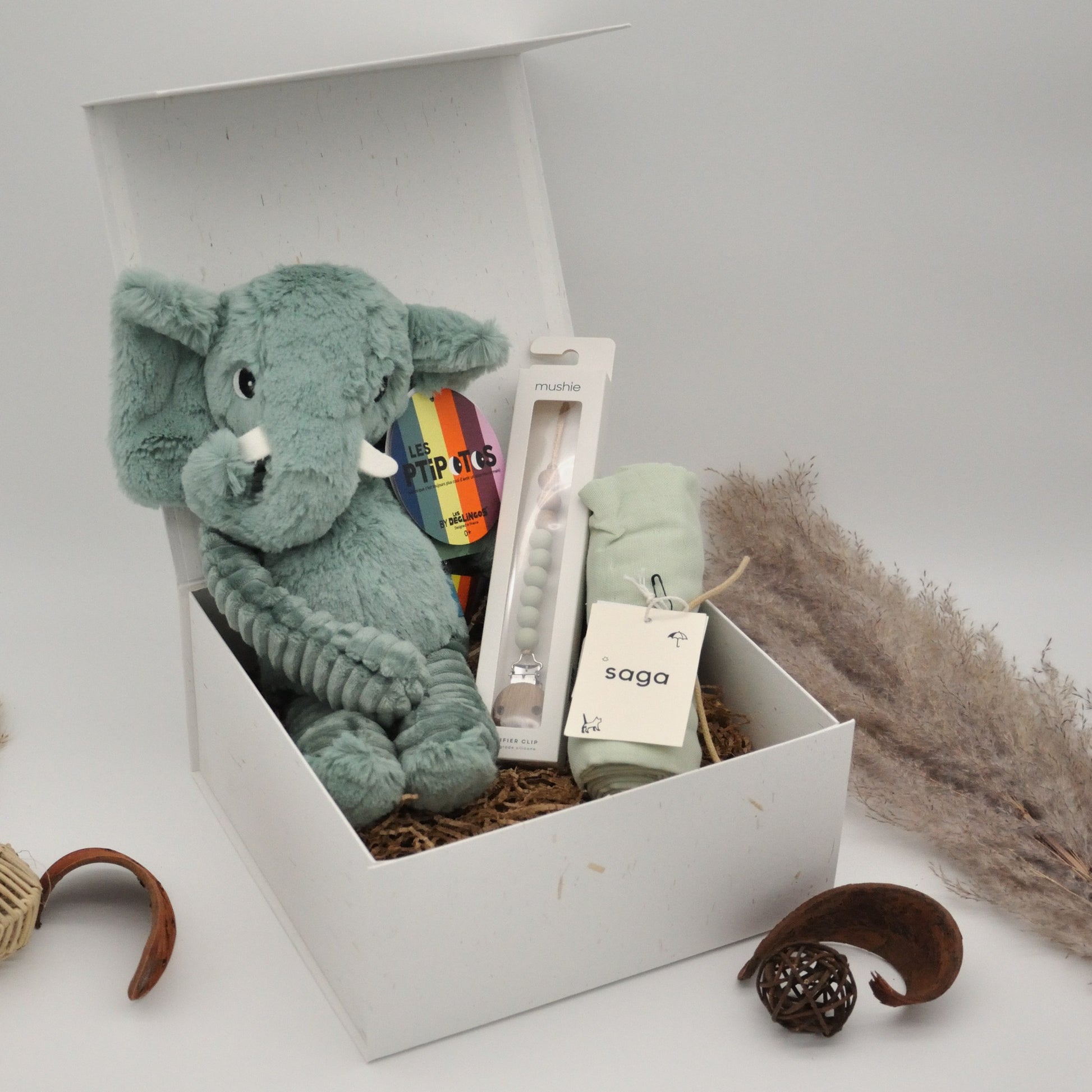 Ce cadeau de naissance est un magnifique cadeau à offrir aux parents juste après la naissance de leur bébé. Tous les produits ont été soigneusement sélectionnés par Wowwy pour être un bel ajout aux besoins d'un nouveau bébé. Les produits sont composés par couleur et feront assurément sourire les parents !