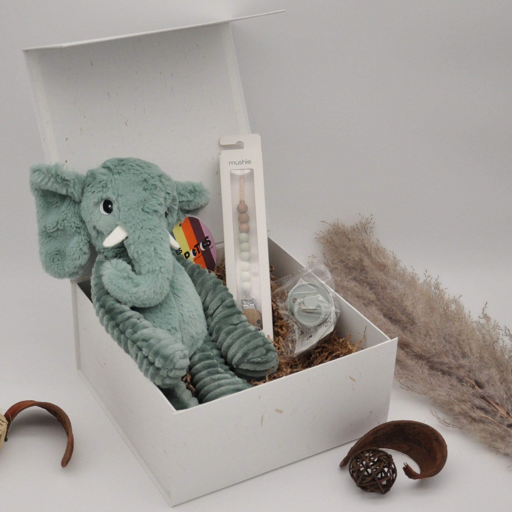 Ce cadeau de naissance est un merveilleux cadeau à offrir aux parents juste après la naissance de leur bébé. Tous les produits ont été soigneusement sélectionnés par Wowwy pour répondre aux besoins d'un nouveau bébé. Les produits sont composés par couleur et feront certainement sourire les parents !