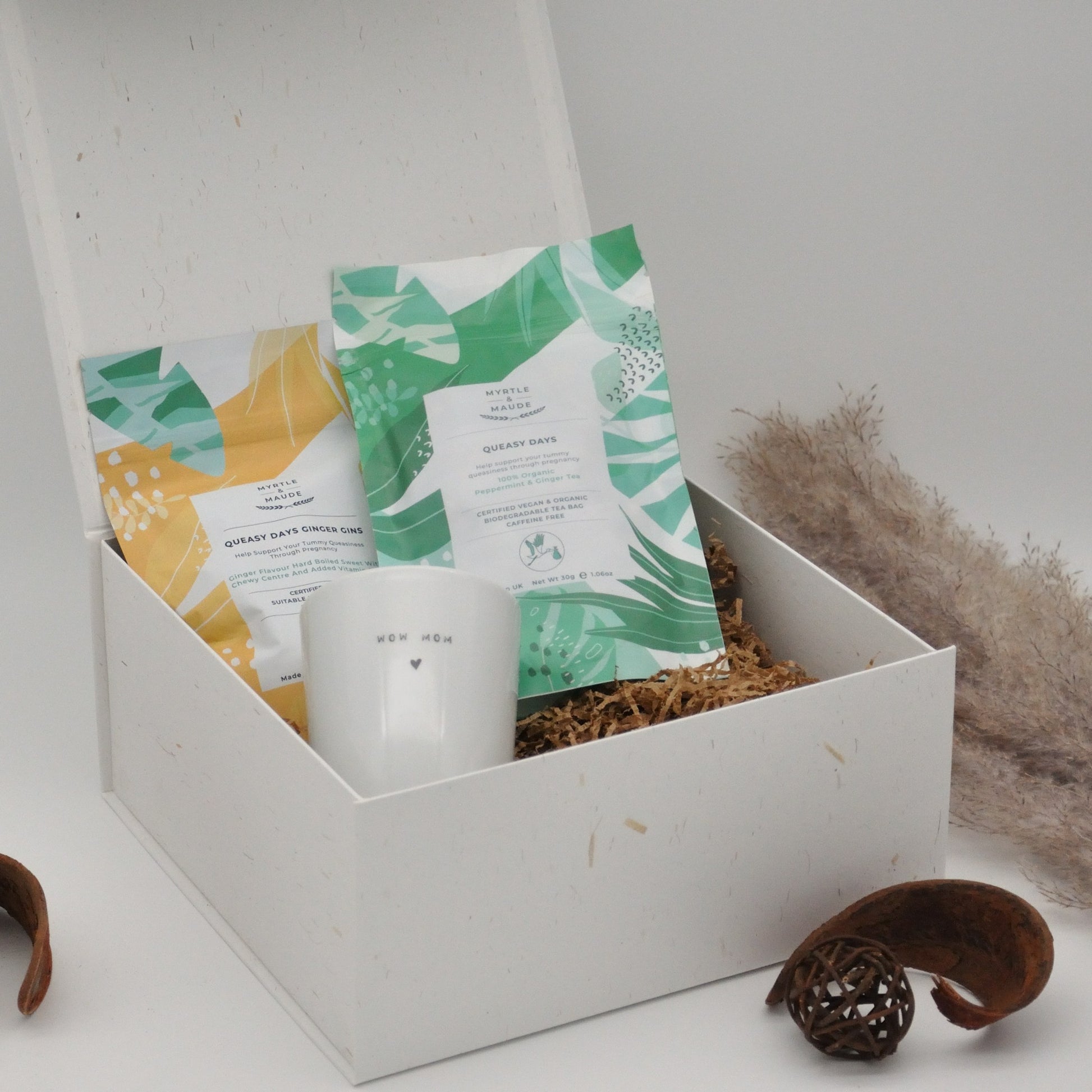 Surprenez une future maman avec notre coffret cadeau soigneusement sélectionné, parfait pour soulager les nausées matinales et lui redonner le sourire. Ce magnifique coffret contient trois produits de haute qualité, emballés dans un élégant coffret cadeau Wowwy.